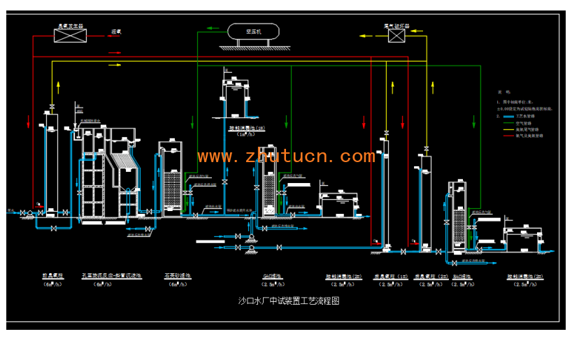 沙口水厂中试装置工艺流程图臭氧生物活性炭净水处理工艺流程图