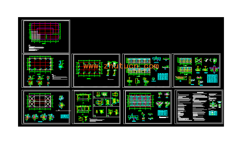 单层钢结构厂房设计图(跨度14米),内容包括地基布桩平面图,基础平面布置图,预埋锚栓布置图,墙架图,屋面结构布置图,屋面檩条布置图