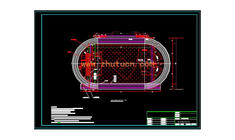 400米塑胶田径场设计图纸,包含400米塑胶田径场标高图,400米塑胶田径场中场盲沟(管)布置图,出水地沟剖面,田径场地基础图,排水沟C-C剖面图,沙池剖面图,障碍水池大样图,撑杆跳场地详图,铅球投掷区,铁饼链球投掷区