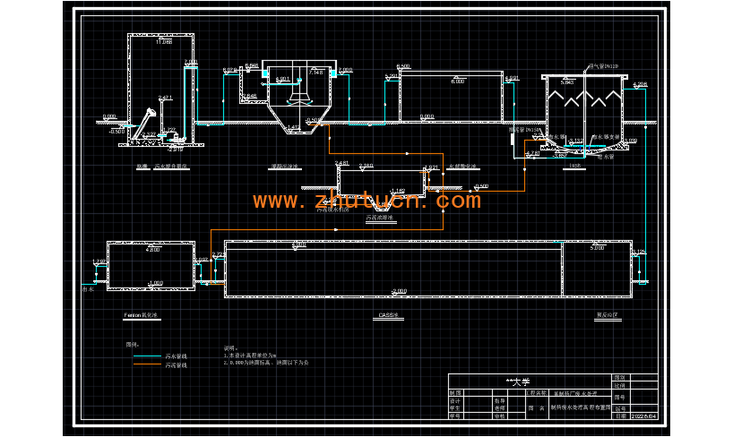 制药废水处理高程布置CAD图,资料为2022年最新课程设计。