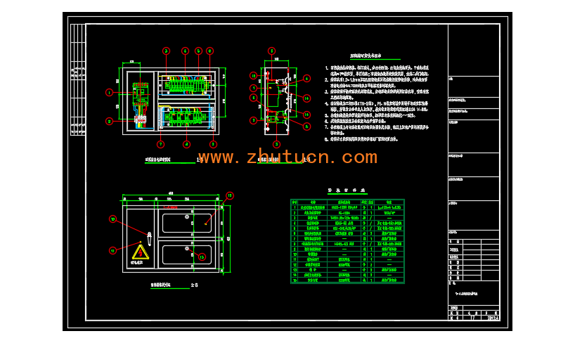 照明箱为挂墙明装、框门型式,分左右两侧。左侧为进线开关、干线电缆通道及“T”接位置,单门结构;右侧为出线开关安装位置,金属二层门结构。