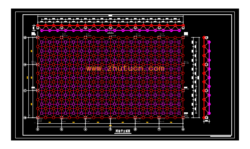 网架结构的外荷载按静力等效的原则,将节点所辖区域内的荷载集中作用在节点上。结构分析时忽略节点刚度的影响,假定节点为铰接,杆件只承受轴向力。