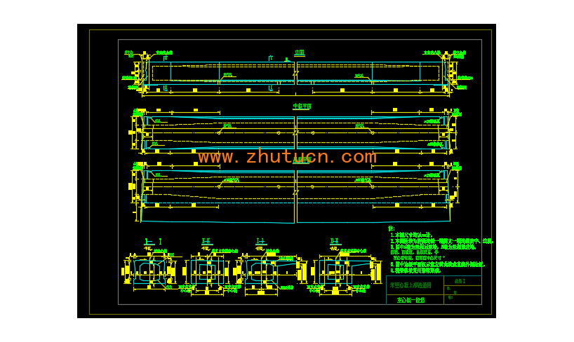 4.横 截 面(半幅):路基宽23m时,7块空心板截面;路基宽24.5m时,8块空心板截面;路基宽33.5m时,11块空心板截面。