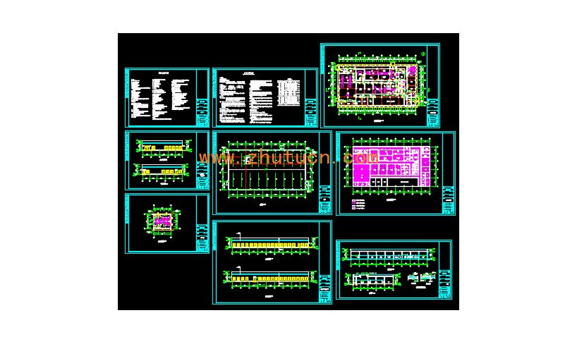 丸剂车间洁净厂房建筑图,包含建筑装修说明,平面布置图,立面图,卫生间放大平面,防爆车间屋面板搭接节点,剖面图,吊顶平面图,