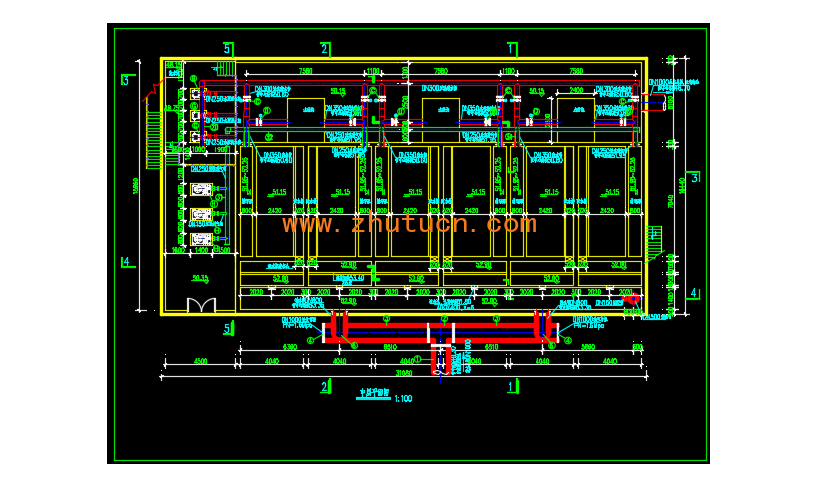 5万吨/天D型生物滤池工艺图,本工程新建D型滤池1座,处理规模5万吨/天。本图标高均采用绝对标高。