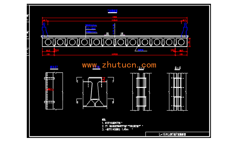 包含L=16米边板材料数量表,桥面连续钢筋布置图,一跨桥面现浇层材料数量表,标准横断面