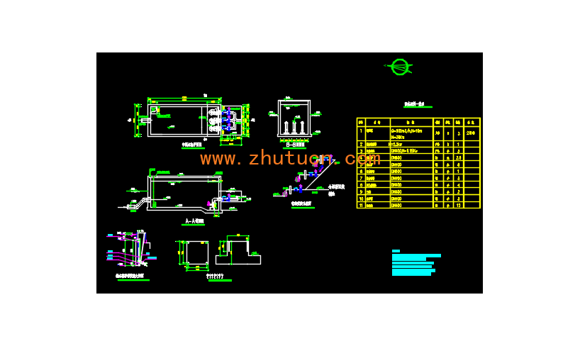 包含潜水搅拌器安装大样图,水泵基础大样图,中间水池平面图,管线安装系统图