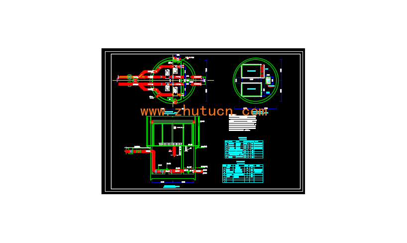 设计水量为200000m3/d,采用固定取水泵房用自流管从吸水井取水,自流管长度150m,水源洪水位标高为99.05m,枯水位标高为87.35m。包含泵站平面图,泵站1-1剖面图,操作平台平面图,主要材料表,主要设备表