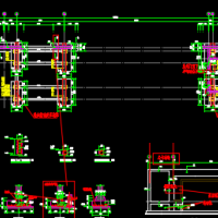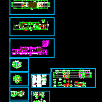 包含一层平面图,屋顶平面图,立面图,门卫平面详图,门卫屋顶平面详图,剖面图,北入口大门结构设计说明,基础平面布置图