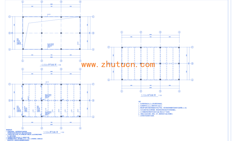 多层厂房固废处理的设备制造产业园结构,设计说明、基础平面图、柱网平面布置图、柱截面配筋图、梁/板配筋平法布置图、室外景观结构大样图、节点配筋图等,内容详实,可供参考。