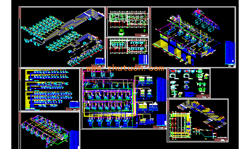 肉食加工厂冷库氨制冷原理图及系统图,包含冷间氨制冷系统图,制冷机房机器设备基础位置图,制冷设备系统图,冷间氨制冷原理图,机房、设备间氨制冷原理图,机房与库房制冷管道连接平面 剖面及系统图,机器间氨制冷系统图
