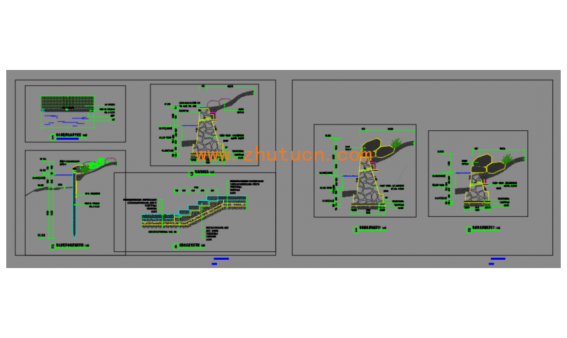 松木桩驳岸标准挡墙驳岸及砌石台阶CAD详图