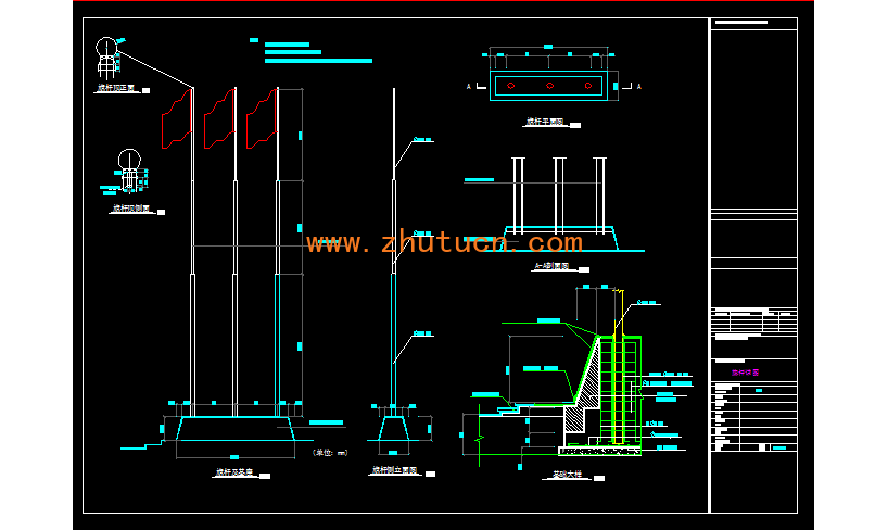 55套升旗台CAD设计详图旗杆图升旗台栏杆围栏学校广场景观旗杆小品CAD图