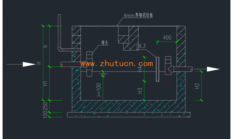 小型隔油池,四种型号。GG-1、2、3、4S型。主要适用于食用油,餐饮类,主要形式:平流式。处理水量分别为:1L/S、1.6L/S、3.2L/S、4.8L/S,即:3.6m/h、5.76m/h、11.52m/h、17.28m/h.简单实用。可参考使用。此图纸参考图集04S519画出来的。关于池体的结构图,可参考词图集。有需要此图集的,可联系我。
