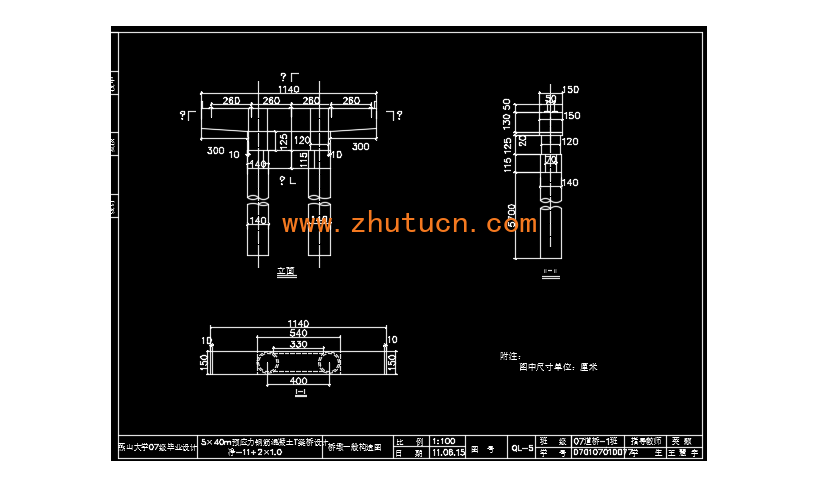 5×40m预应力钢筋混凝土T梁桥课程设计(净-11+2×1.0),主要依据是混凝土结构理论、桥梁工程等专业知识,毕业设计任务书等