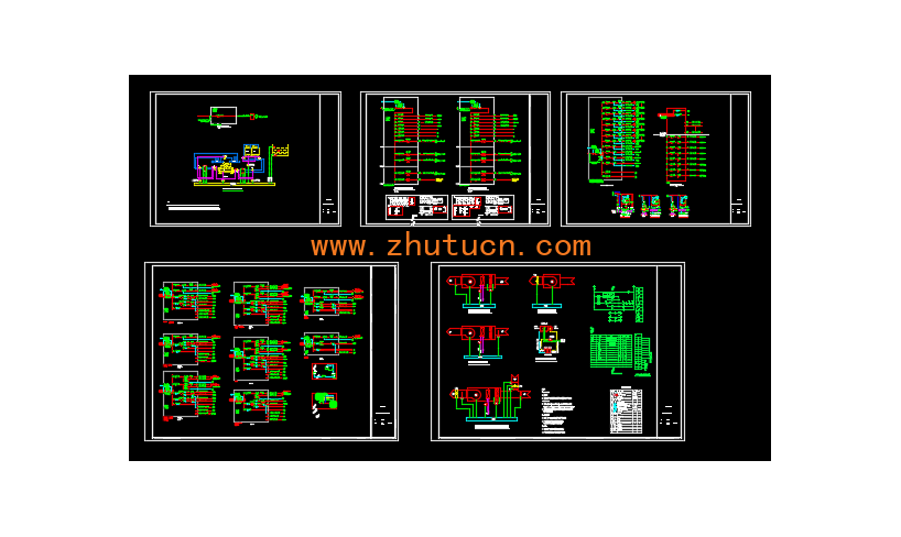 中央空调配电系统图(一次图及二次图),包含中央制冷自动控制系统原理图,冷冻泵、冷却泵配电柜(箱)系统图,冷却塔配电柜(箱)系统图,风柜机配电柜(箱)系统图,风机控制系统原理图