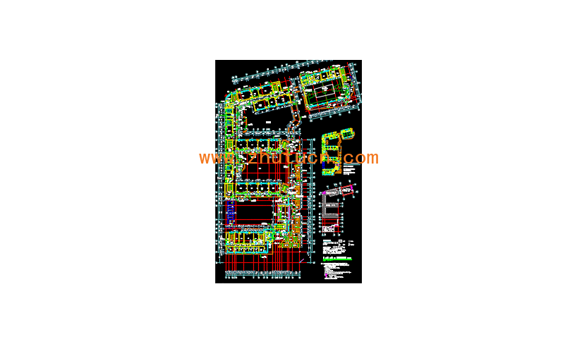 本工程总规划用地为23337平方米,为三十班小学。内含学校教学楼、实验楼、行政综合楼、餐厅,另有变电所,配电间等辅助配套用房。建筑总体采用条状布局,由南向北依次布置有行政楼、教学楼、实验楼,通过东侧的共享平台及西侧的教学辅助用房加以联系,并通过廊道与东北侧的餐厅、风雨操场连接为一整体。建筑总高度控制24米以内,总建筑面积为20856.74平方米,其中地下为6570.95平米,地上为14285.79平米。本项目地上部分为7栋单体。1#为教学实验楼,2#为行政综合楼,3#为食堂及风雨操场,4#为配电间和开关站,5#为西门传达室,6#为南门传达室,7#为垃圾房。另外,地下室还设置人防,为甲类民防,核6级、常6级人防工程,战时功能为二等人员掩蔽部。