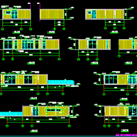 装配式集装箱展示区CAD图纸,包含设计总说明,一层平面布置图,二层平面布置图,立面图,门窗结构大样图,雨棚大样、雨棚位置关系,保温层做法大样,楼梯大样、墙板大样,二层底框结构平面图,二层屋面瓦楞板布置图