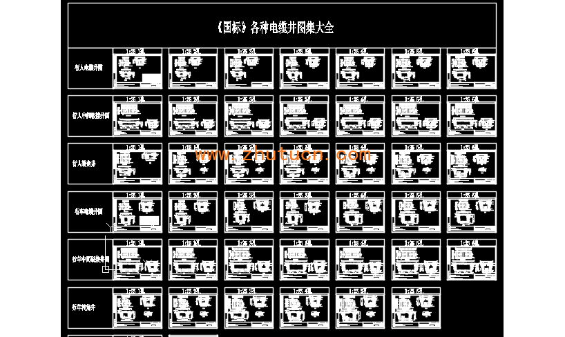 各种电缆井CAD图集大全(国标),包含行人电缆井图,行人中间驳接井图,行人转角井,行车电缆井图,行车中间驳接井图,行车转角井,电缆井盖图纸。