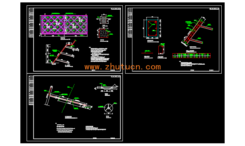 锚杆格构护坡CAD大样图,1、本页图尺寸除钢筋直径以mm为单位外,其余均以cm为单位。2、本页图适用于中风化岩质挖方边坡防护,边坡以8m高分级。锚筋应露出孔外800mm,然后弯曲与网格梁纵向受力筋绑扎在一起,并采取措施以确保连接牢固。