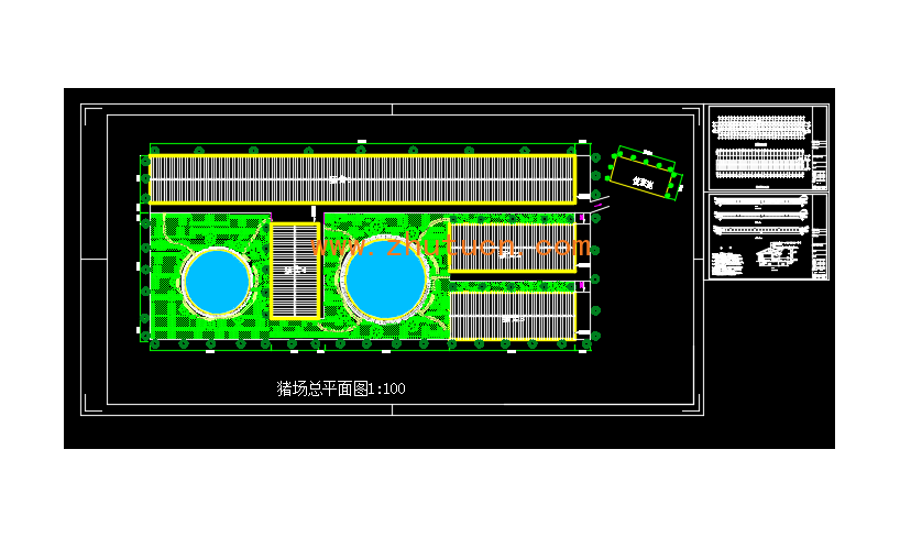 养猪场总平面图及单体平立剖面图