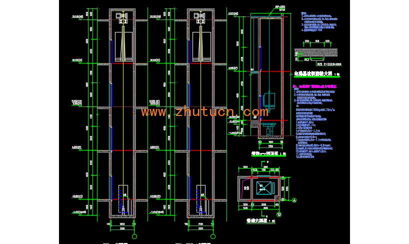 由于甲方未提供电梯样本,本工程电梯全部按国标设计,待厂家确认后方可施工。本工程采用的各种电梯的型号规格、台数、载重量、速度等技术参数详见建筑设计总说明中有关电梯说明。