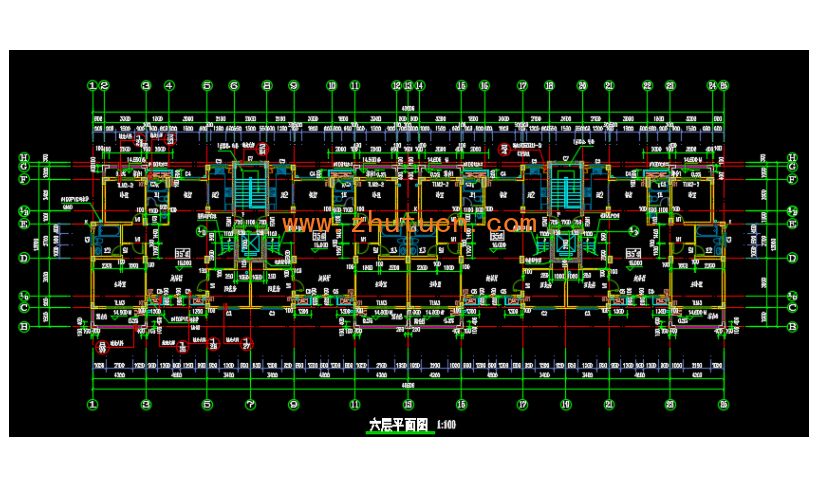 河南六层花园洋房建筑设计施工图,建筑面积: 4087.47 平方米.建筑高度: 24.17米(单元入口室外地坪至屋面女儿墙高度处)建筑层数: 6+1层