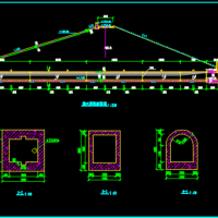 水库输水洞及工作闸CAD施工图,输水洞出口采用砼矩形墙形式;闸门采用铸铁闸门;洞身每15m设横向伸缩缝一道,缝内填沥青砂板。输水洞末端接20m浇灌渠道。输水洞洞身材料和进水塔材料均为C25砼。伸缩缝止水采用320橡胶止水带。