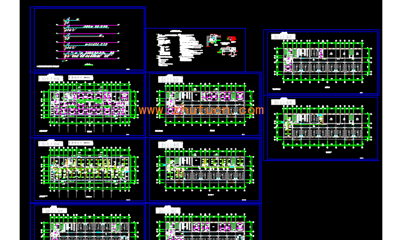 五层宿舍楼中央空调系统设计图,新增采暖空调面积合计约5721平米,本方案拟采用热泵技术回收矿井水和地下水中储存的冷热量,满足宿舍楼和教学楼采暖空调的需要,并对原有机房重新改造,机房在原位置改造为两层。原有机房的供热能力为:采暖空调6700,洗浴热水80m3/班。空调/采暖共用一个管路系统,末端设备采用风机盘管。风机盘管采用卧式暗装和立式明装的方式。送风方式采用下送下回或侧送下回。