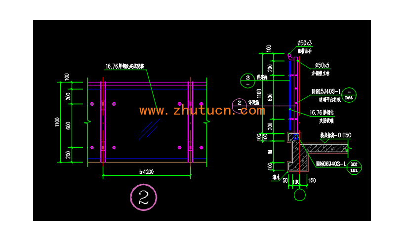 玻璃栏杆玻璃栏板立面及剖面CAD图