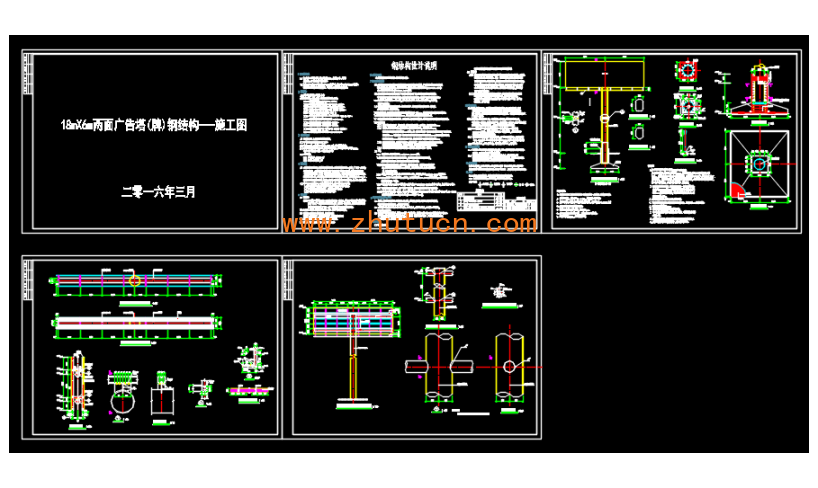 18mX6m钢结构两面广告牌施工图