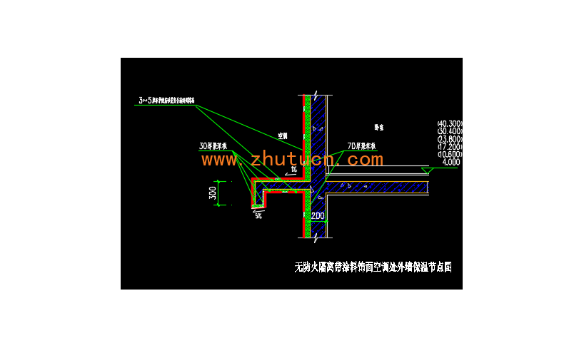 无防火隔离带涂料饰面空调处外墙保温CAD节点图