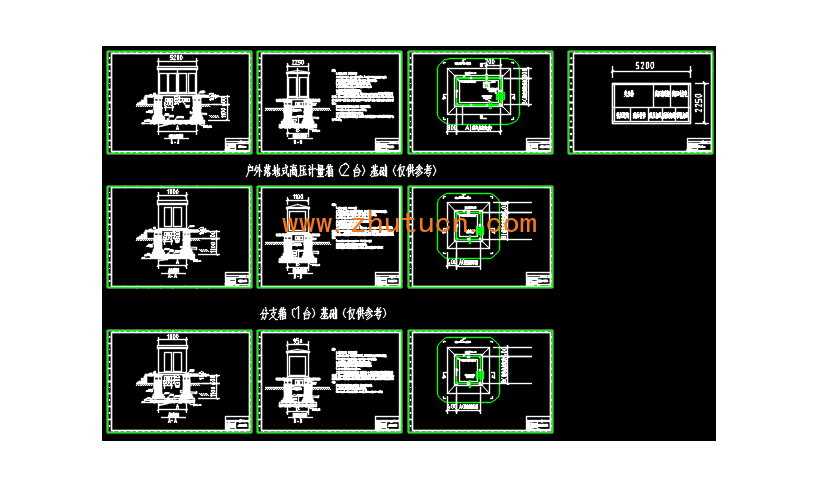 1250KVA箱变及计量箱分支箱基础安装CAD图,包含箱变基础断面图,箱变接地平面布置图,箱变平面布置图,计量箱基础断面图,计量箱接地平面布置图,分支箱基础断面图,分支箱接地平面布置图