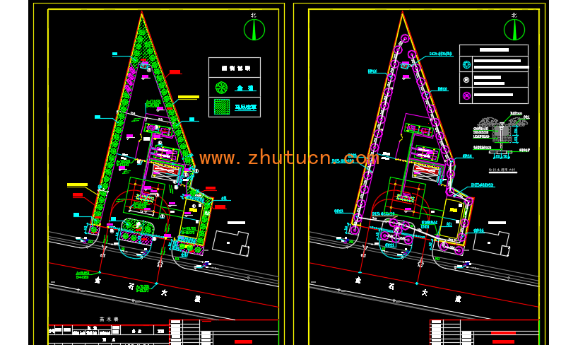 包含绿化平面布置图,绿化给水平面布置图,总平面布置图,室外地面及道路做法