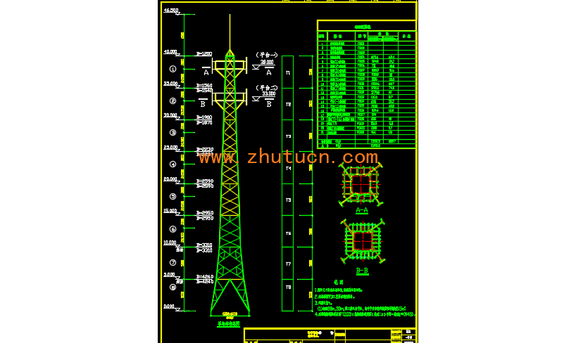 通信基站钢结构铁塔结构图(40米高)