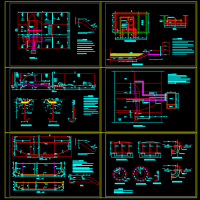 5米高橡胶坝初步设计CAD图纸,包含橡胶坝平面图, 控制室管路布置图,供排水系统立面图,上游锚固槽大样图,供排水管道平面布置图,底垫片展开图
