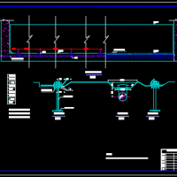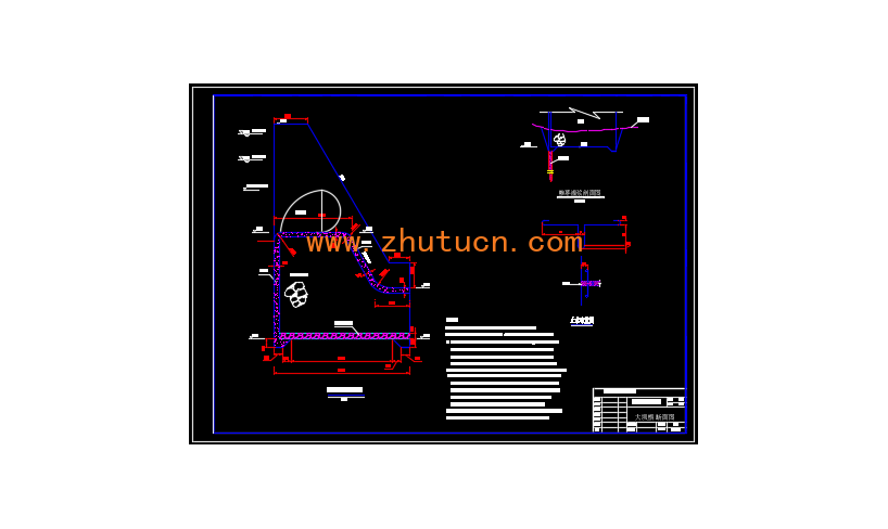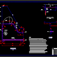 小型水电站充气橡胶坝结构设计图,包含橡胶坝纵剖面、A、B、C大样图,充气式橡胶坝设计图,橡胶坝锚固结构图,大坝横断面图,大坝纵断面图,坝袋成型加工图