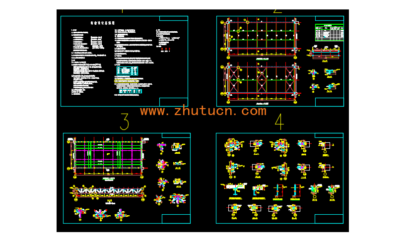 21m跨天桥钢桁架连廊结构CAD图,包括结构设计说明,天桥顶面布置图,天桥底面布置图,天桥楼板施工图,连廊剖面图。