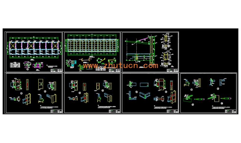 9m跨钢排架雨棚钢结构施工图,包含屋面布置图,檩条节点,屋面檩条布置图,一榀钢架立面图