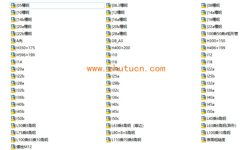 钢结构设计常用CAD图块(槽钢 H型钢 Ⅰ型钢 角钢)