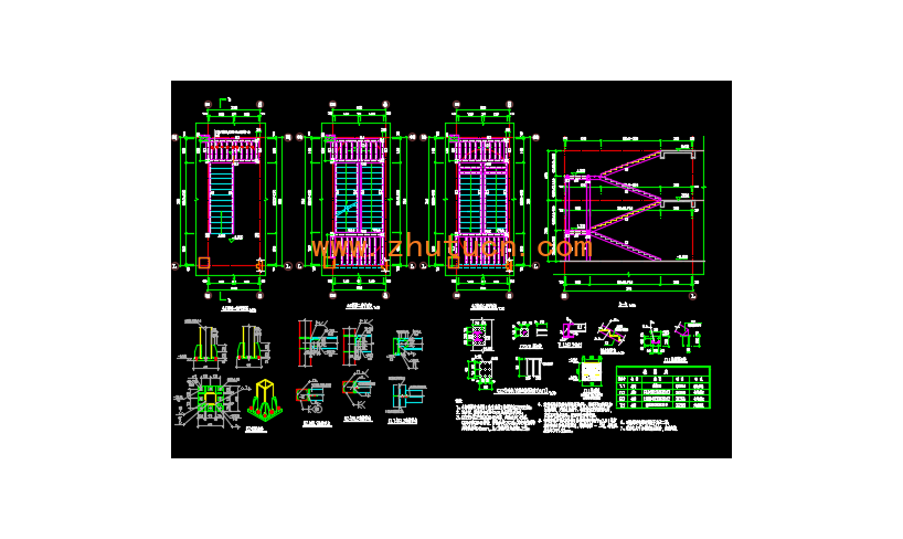 两层钢结构梁式楼梯施工图,本图楼梯所用材料(除注明外)的材质为Q235B钢。踏步板、楼梯平台采用4mm厚菱豆型花纹板;