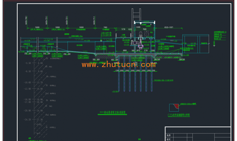 新建闸站1座,泵站排涝设计流量同老闸站,均为9.822m3/s(排涝流量迁移),新增泵站引水流量1.0m3/s;地基采用PHC管桩进行处理。