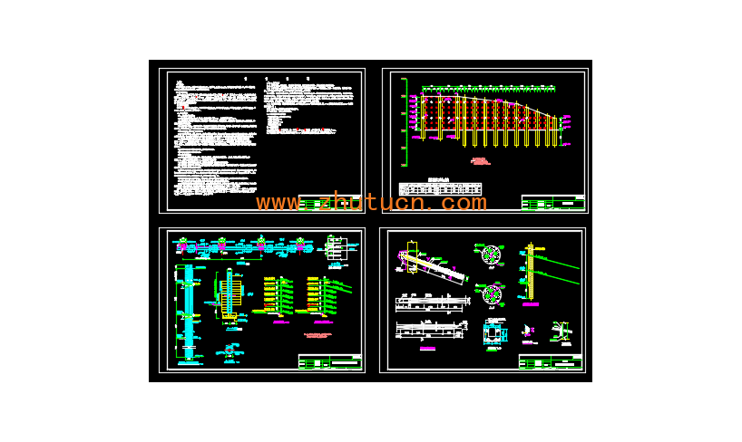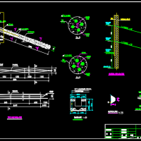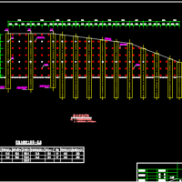 预应力锚索+钢筋混凝土灌注桩板式护坡设计图,设计桩径为1000mm,排桩嵌固段长度为4.60m,排桩间距2.00m、3.0m;桩顶标高与设计路面标高一致;混凝土强度等级为C30,钢筋保护层厚度为50mm。桩长根据现场情况确定。 预应力锚索采用4束ASTMA416-92标准的高强度低松弛270(1860)级6×7 15.24mm钢绞线