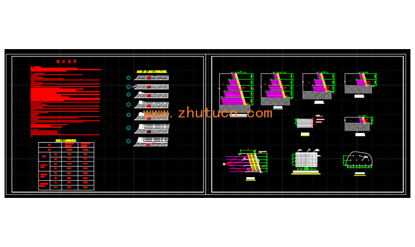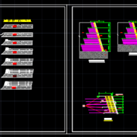 加筋土挡墙剖面大样CAD图,包含加筋土工布指标要求,加筋土挡土墙施工步骤示意图,断面图,反包大样图,反包段钢筋网、锚杆、伸缩缝大样图,排水孔布置图