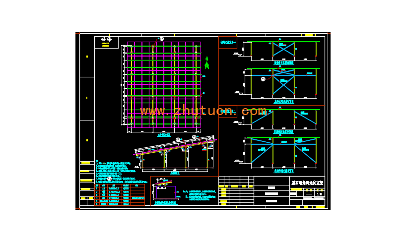 光伏组件排布、光伏支架及光伏水槽布置CAD图(屋顶阳光房光伏支架)