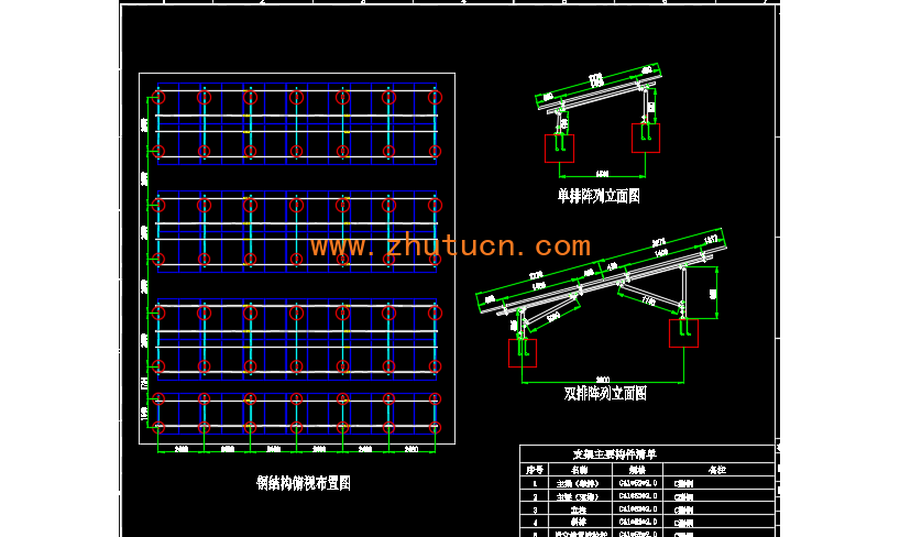 包含光伏阵列布置图,常规光伏支架结构图,常规光伏支架立面图,常规光伏支架节点图