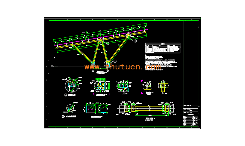 内容包括结构设计说明,车棚基础布置总图,典型车棚结构图,基础详图,双车位车棚钢架详图,单车位车棚钢架详图,节点详图