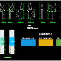地下车库标识标线图及导向箭头CAD详图,包含地下室标识标线图,地下车库标识标牌工程量清单,出入口标志牌,车轮定位器尺寸图,车位尺寸图,反光镜,橡胶减速板,地面导向箭头详图,分区墙裙及柱裙示意图