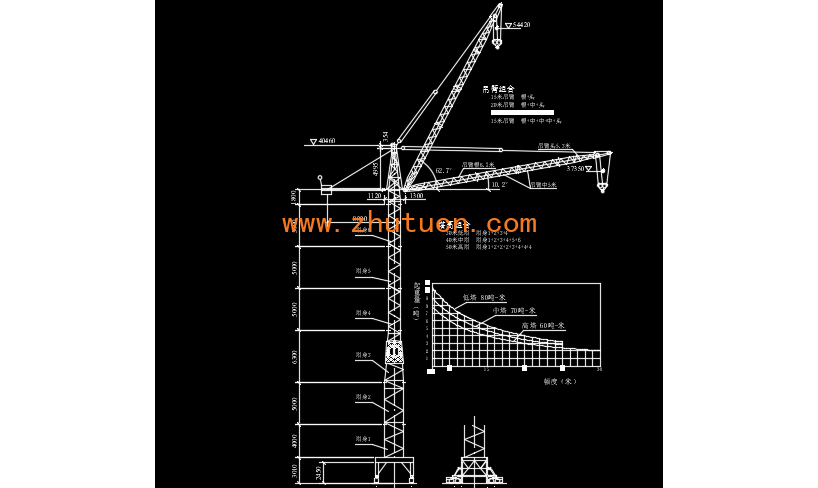 21种型号吊车CAD图块,包含起重基础知识插图,履带吊250,徐州25T汽车吊,辽源10吨塔吊,电动履带吊