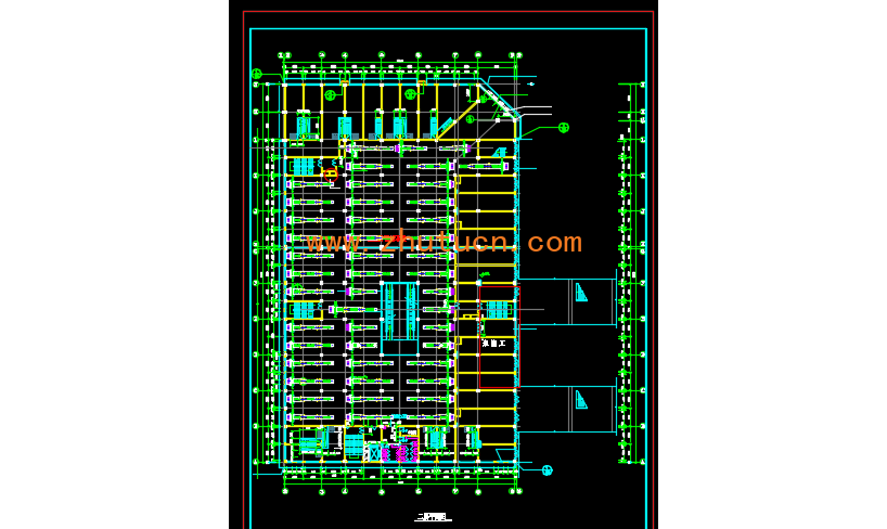 河南某多层商场空调通风系统设计图纸,一到六层空调系统工程,总空调面积15136平方米左右;第六层为顶层。本建筑计算夏季制冷负荷为6851Kw,四、五两层采用风冷模块机组,制冷主机选用志高风冷热泵模块机组15台,型号LSQWRF130M/FA,每台制冷量为130Kw。六层采用志高轻型商用天花机与新风机设计,天花机单台每台制冷量为10Kw,新风机单台制冷量28kw.本楼空调水系统为一次泵负荷侧变流量两管制闭式循环系统。水系统立管为异层式;所有末端空调设备均设置温控开关,支干管设置闸阀。空调水系统划分详见《空调水系统流程图》。
